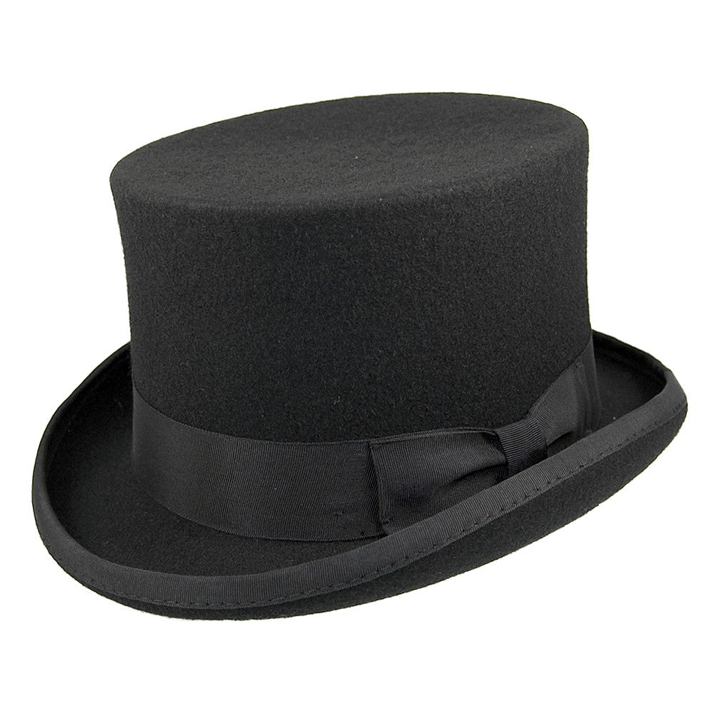Black Mid Crown Top Hat is crafted from 100% wool felt and finished with grosgrain hatband and edging.