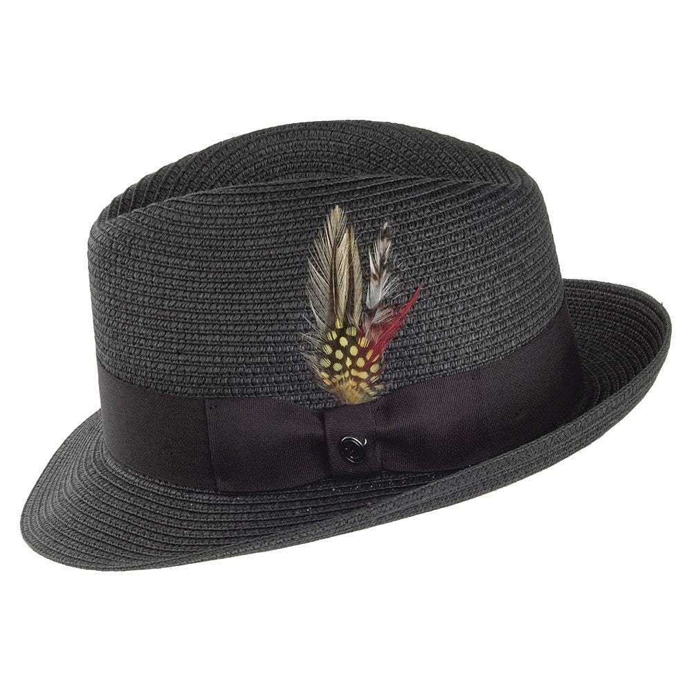 Black Pinch Crown Straw Trilby Hat is crafted from 100% toyo straw and finished with comfort sweatband and decorative side pin.