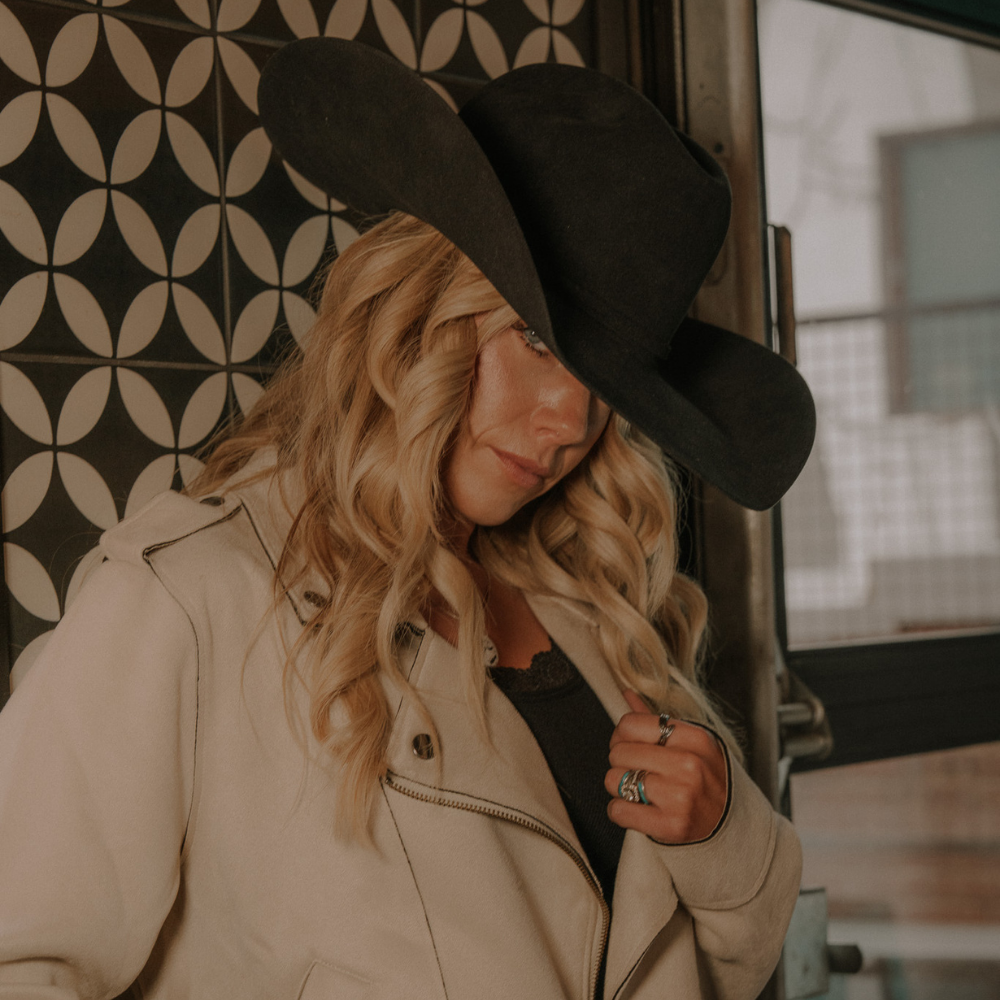 The Black Pure Beaver Western Felt Hat offers an elevated western silhouette with a pure beaver felt body and a rich, velvety finish. The black shade adds depth and character, making it a standout option for everyday wear or statement styling.