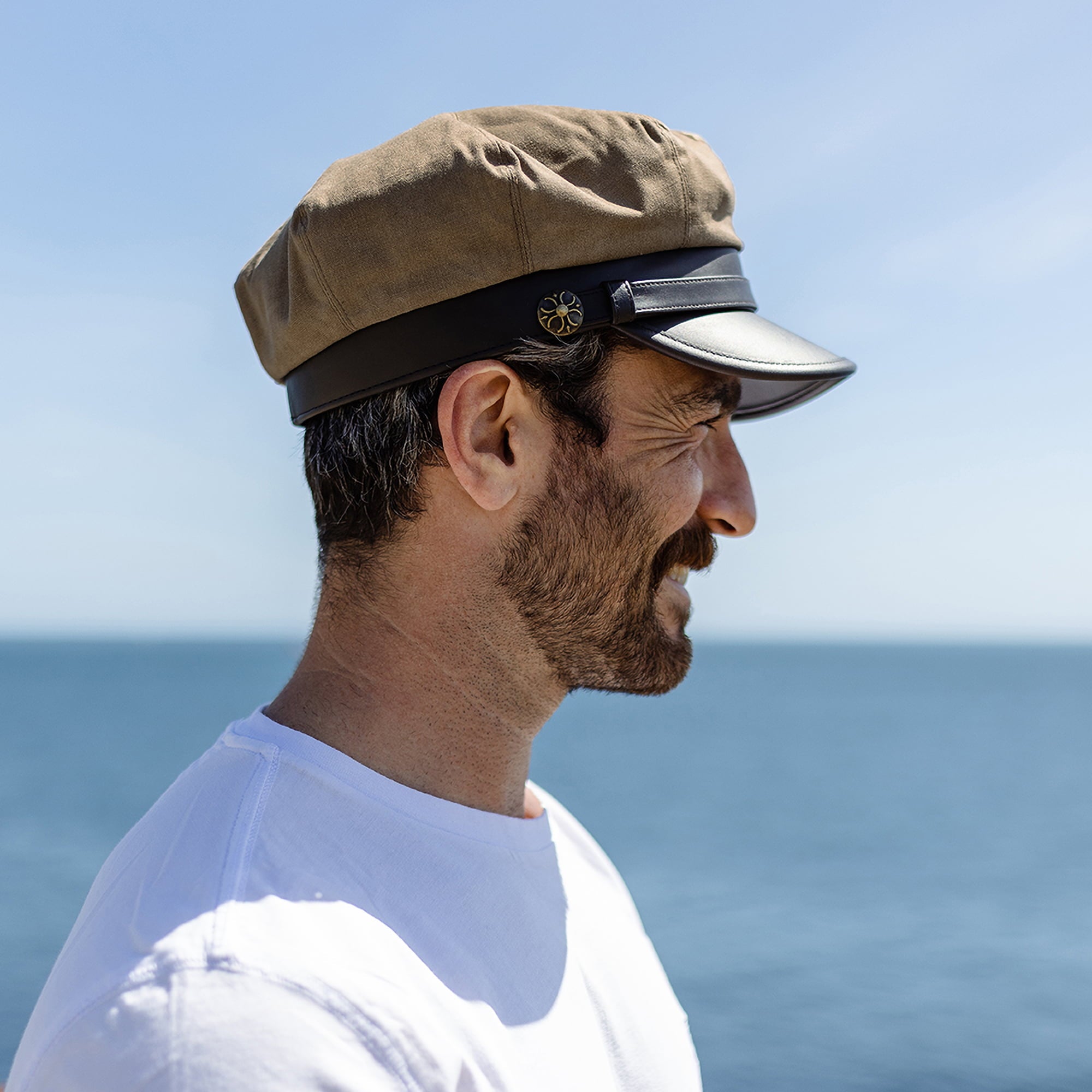 British Tan Waxed Cotton Motorcycle Cap is crafted from 60% waxed cotton, 40% polyester and finished with comfort sweatband and water-resistant finish (not waterproof).