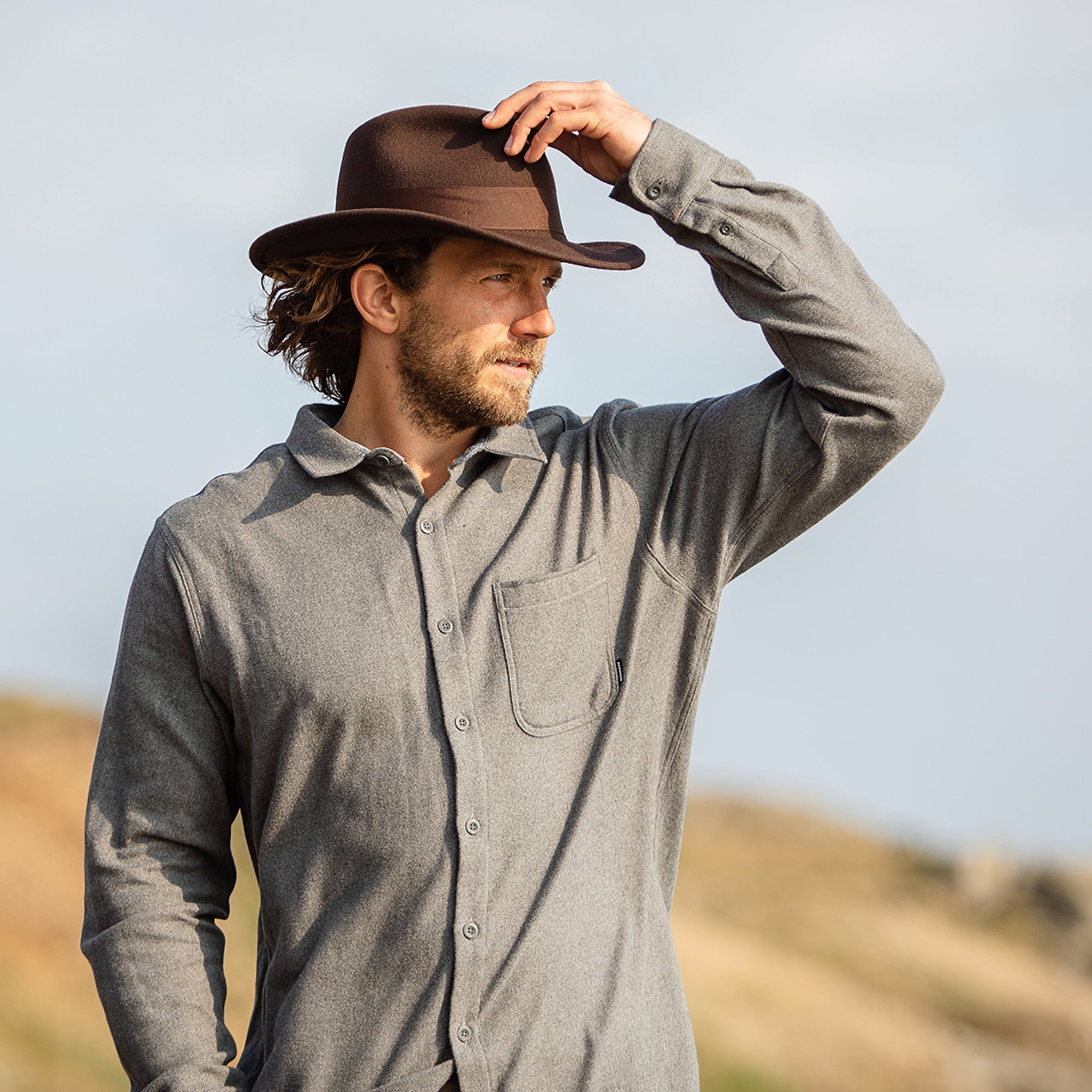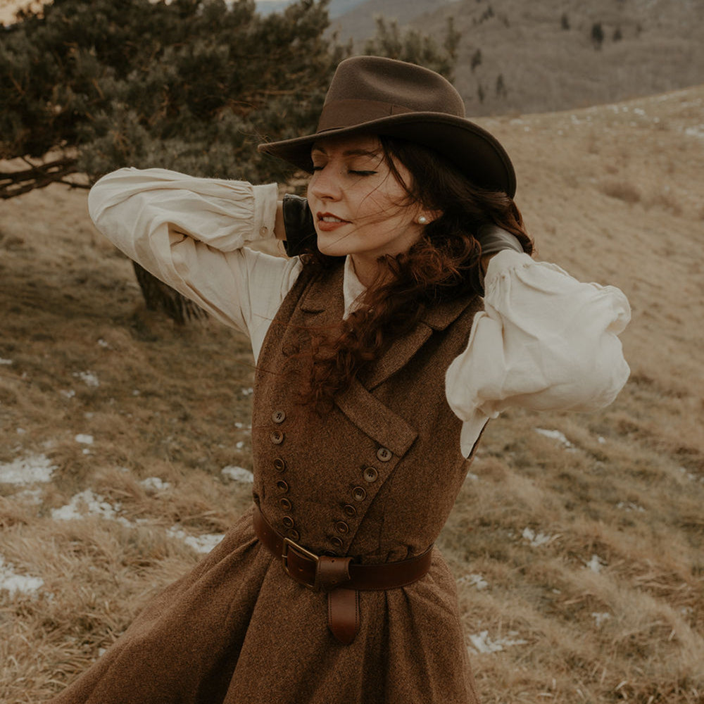 Brown Crushable Wool Felt Wide Brim Fedora Hat is crafted from 100% wool felt and finished with cotton sweatband and 4cm grosgrain hatband with bow on the side.
