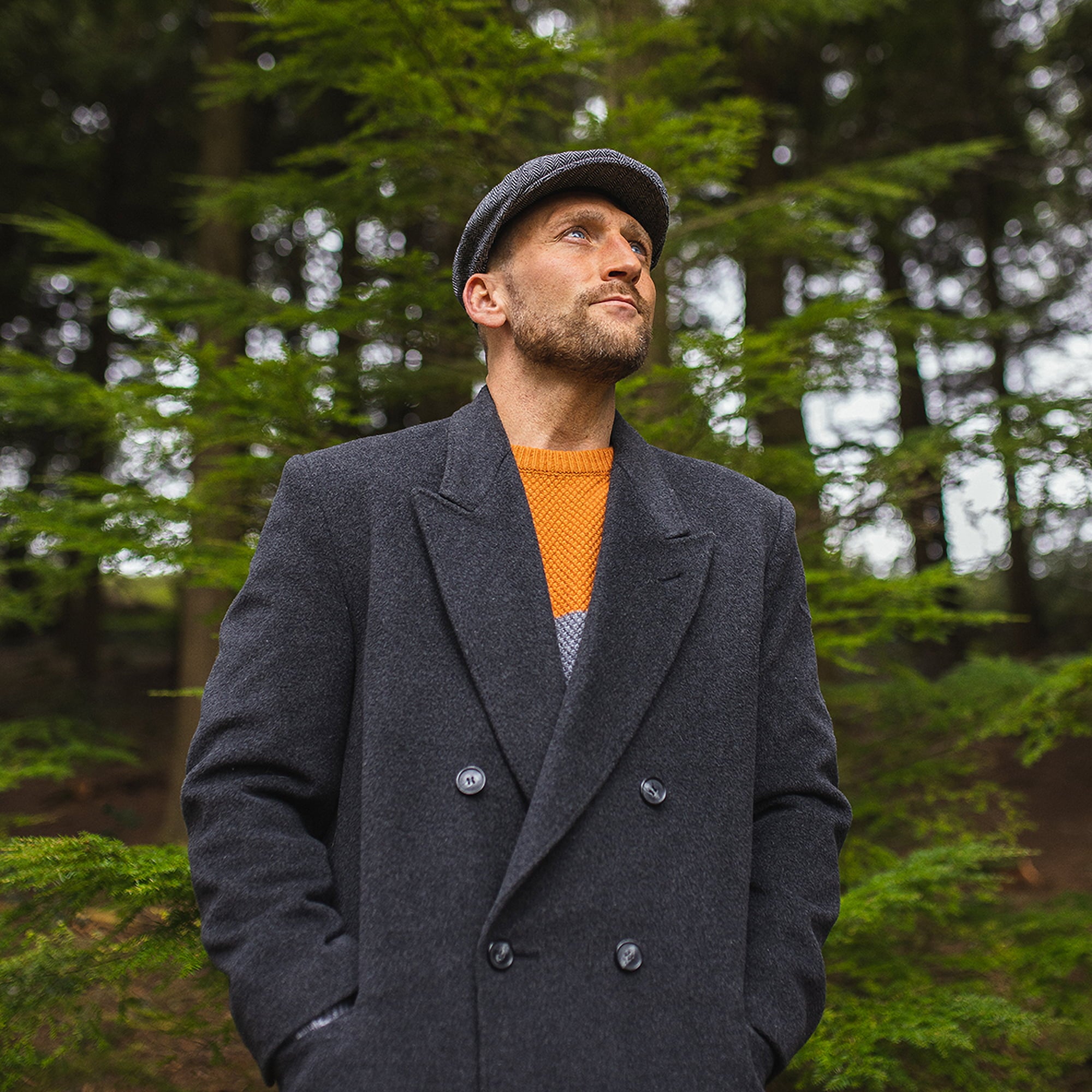 Grey Herringbone Newsboy Cap is crafted from 30% wool, 70% polyester and finished with grosgrain sweatband and decorative side pin.