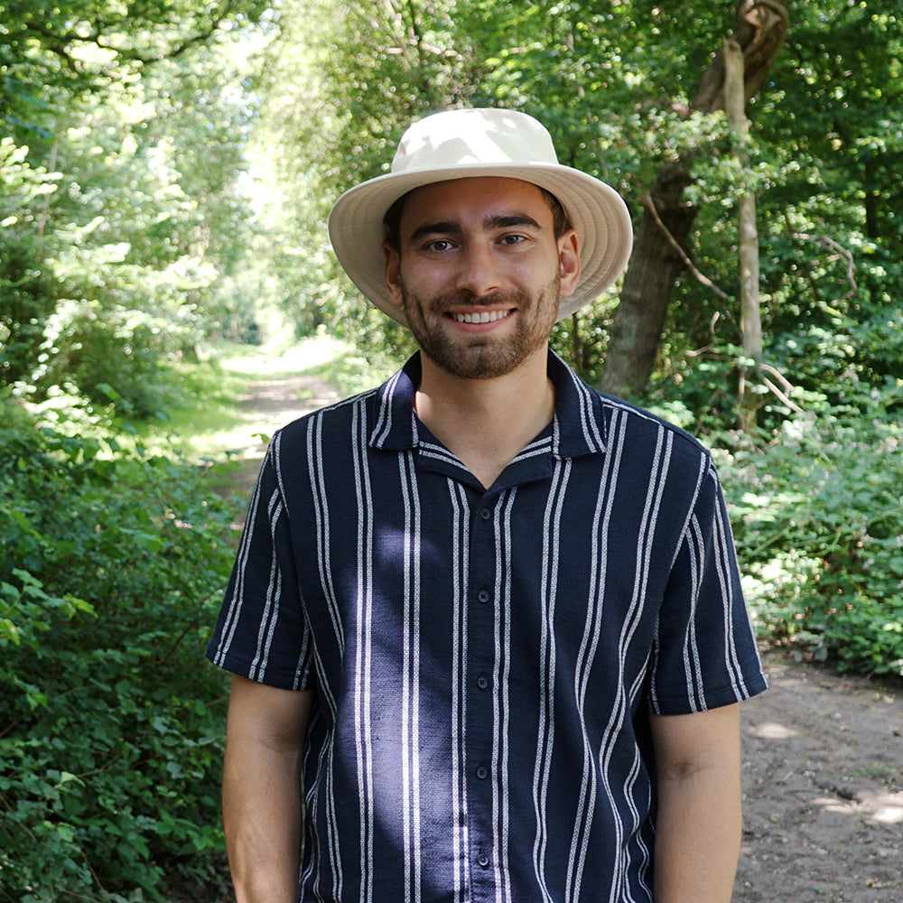 Ivory Cotton Canvas Packable Sun Hat is crafted from 100% cotton and finished with interior cotton sweatband and crown approximately measures 9 cm.