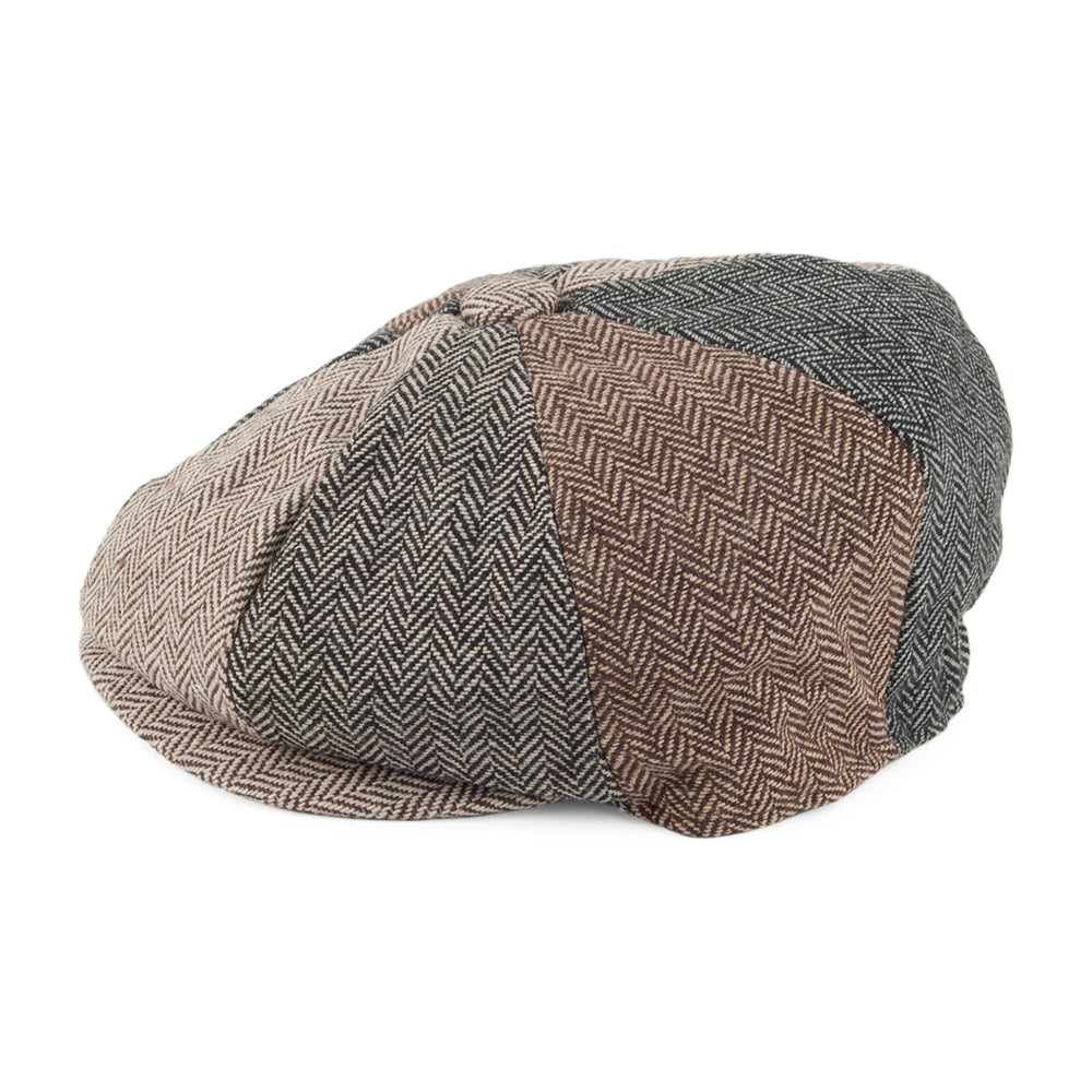 Multi-Coloured Kids Herringbone Patch Newsboy Cap is crafted from 60% polyester, 40% wool and finished with grosgrain sweatband and sewn down brim.