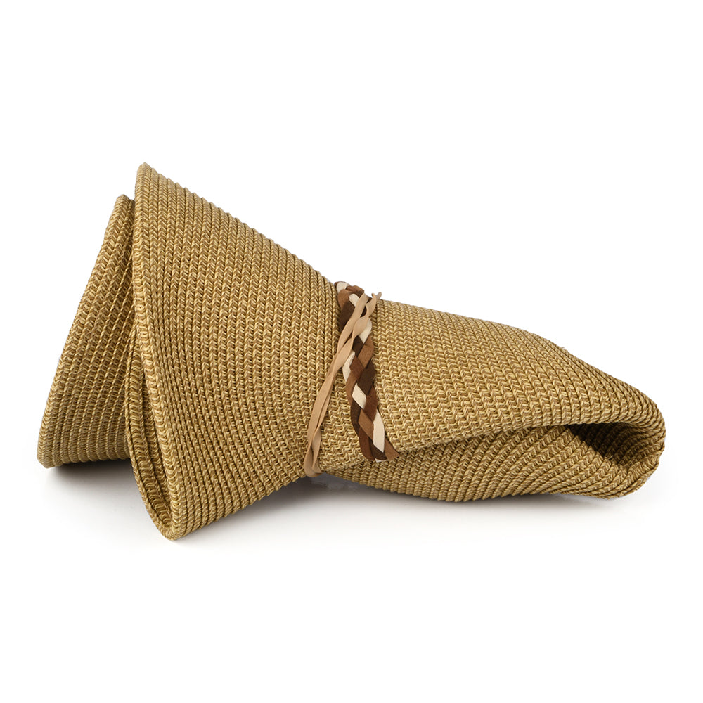 Toast Packable Floppy Sun Hat is crafted from 75% toyo straw, 25% polyester and finished with grosgrain sweatband with adjustable drawstring and braided hat band.